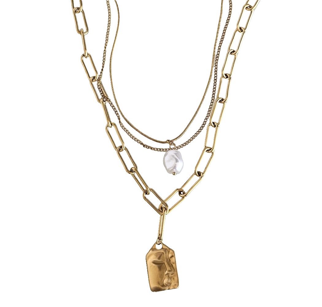 This Muse Pearl Necklace features an 18K gold-plated stainless steel chain, combining luxurious shine with exceptional durability. Its design supports layering multiple pendants, offering a versatile and elegant accessory for any collection. Expertly crafted to resist fading and everyday wear, this necklace delivers timeless sophistication and resilience, perfectly suited to elevate a variety of styles with lasting refinement.