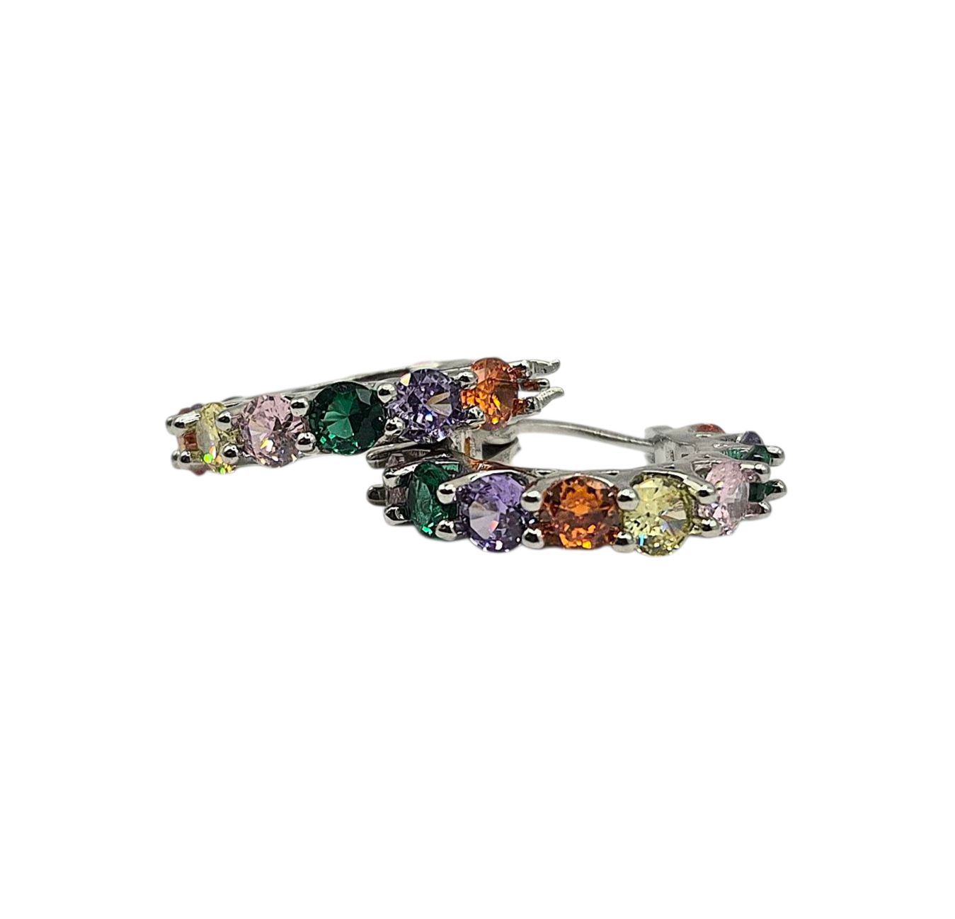 Prisma Hoops - A celebration of color and light, these silver hoops are crafted from stainless steel and set with rainbow gemstones for a playful yet chic vibe. Perfect for adding joy and vibrance to any outfit.